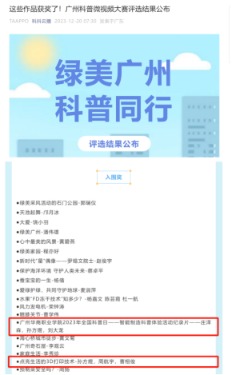 近年来,广州华商职业学院已连续2年举办全国科普日活动。此前,在广州市科协公布的《2023年度广州科普微视频大赛获奖名单》中,该校参赛的2部全国科普日活动作品榜上有名,均获“入围奖”。此次是首次获得广东省科协和广州市科协给予的表彰。