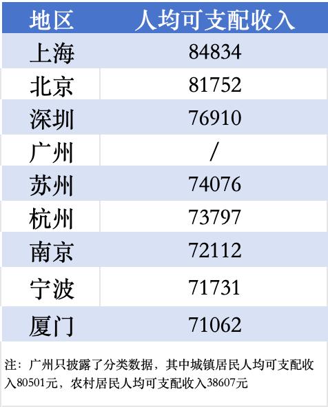 据上证报记者梳理,2023年,上海、北京依旧是居民人均可支配收入最高的城市,首次突破8万元,此外深圳、广州、苏州、杭州、南京、宁波、厦门等城市,人均可支配收入也都超过7万元。